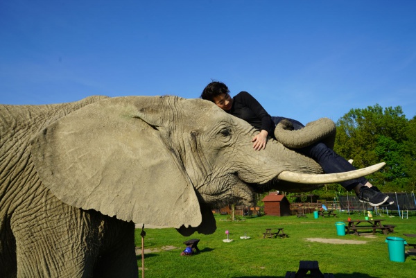 In einem ersten Teil hat sie 2016 in Berlin den legendären Zirkus Busch zu ihrer Ausstellung eingeladen. In der Mitte des Ausstellungsraums installierte sie eine runde Manege, in der dann die Tiere zusammen mit Zirkus-Artisten aufgetreten sind. Alle Zirkustiere außer einem. Der Elefant hat nicht durch die Tür der Galerie gepasst.